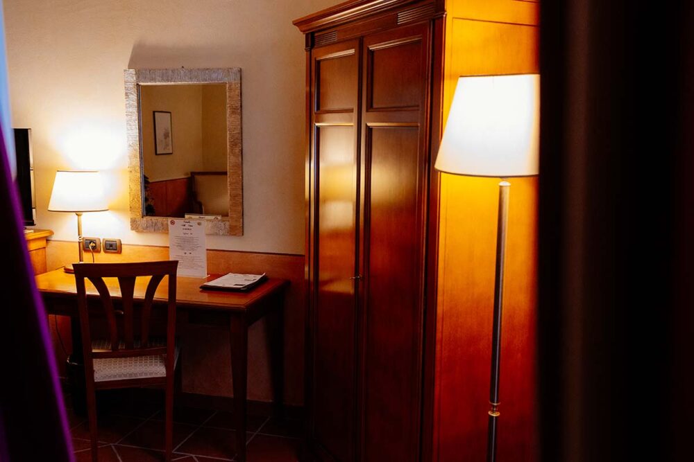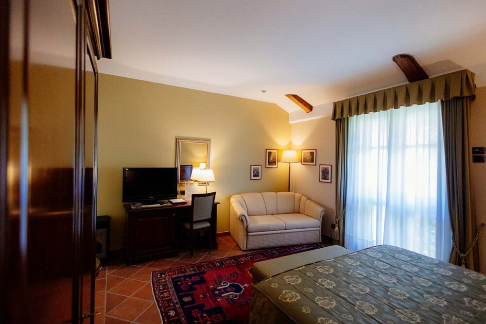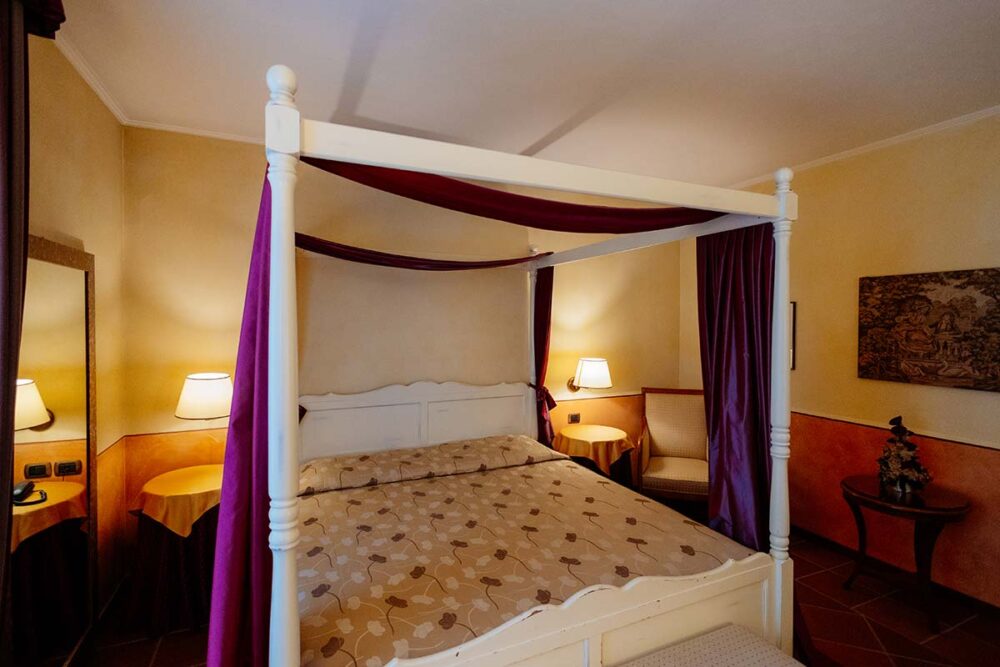 La dimensione delle camere Deluxe è di circa 20 mq, ma ogni singola camera è arredata singolarmente per far sì che i nostri Ospiti godano di un’atmosfera di altri tempi circondati da elementi d’arredo che rimandano alla tradizione